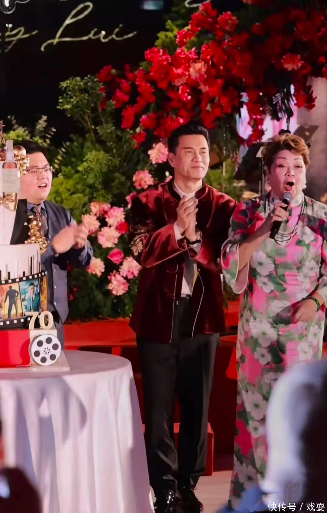 首先就是众星云集,堪比颁奖典礼。再就是场面壮观华丽、70岁的寿星公看着顶多�出头。这场面,真是太震撼了。